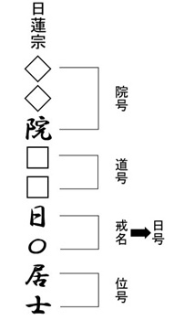 お題目:南無妙法蓮華経(なむみょうほうれんげきょう)※日蓮系宗では考え方の違いから唱名をお題目と言います。